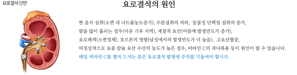 신우요관 이행부 부터 방광요관 이행부 사이의 결석이 소변 배출을 방해하며 막으면 신장에 염증을 일으키게 됩니다.